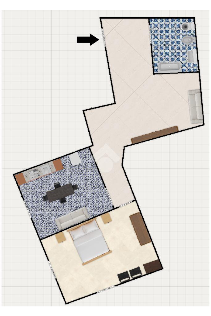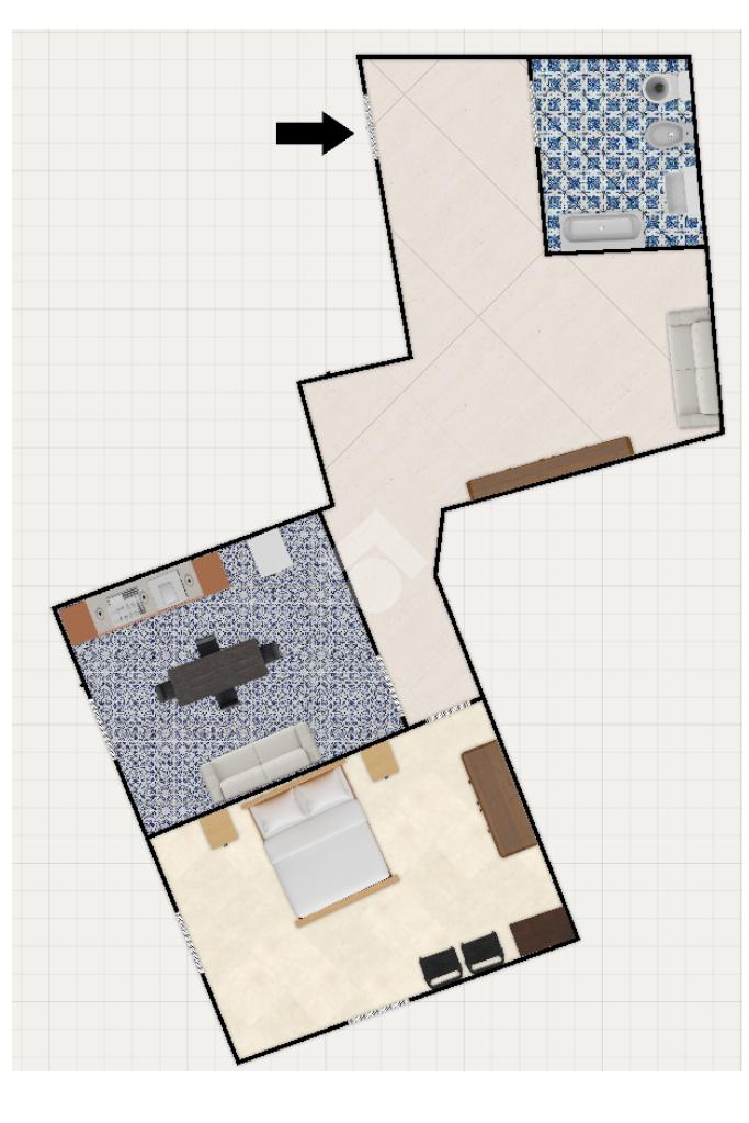 La soluzione risulta composta da soggiorno e cucina a vista, camera matrimoniale e bagno con doccia.