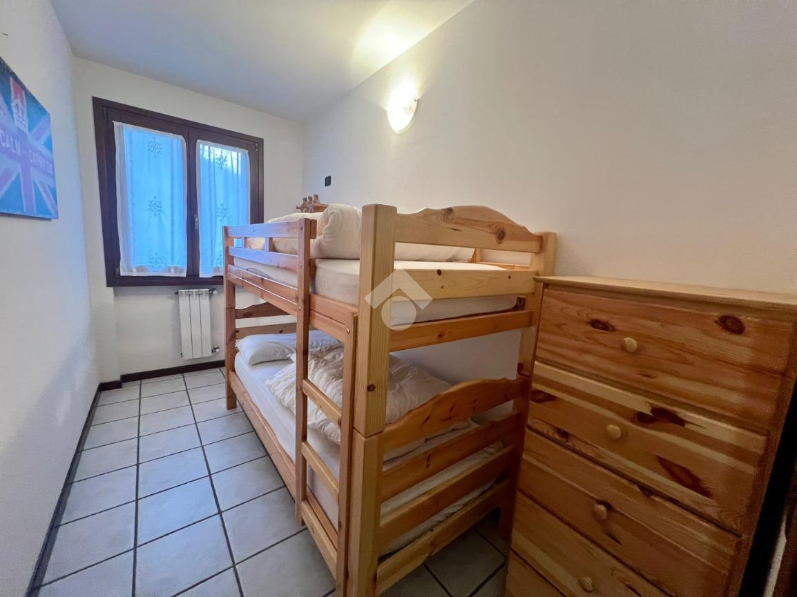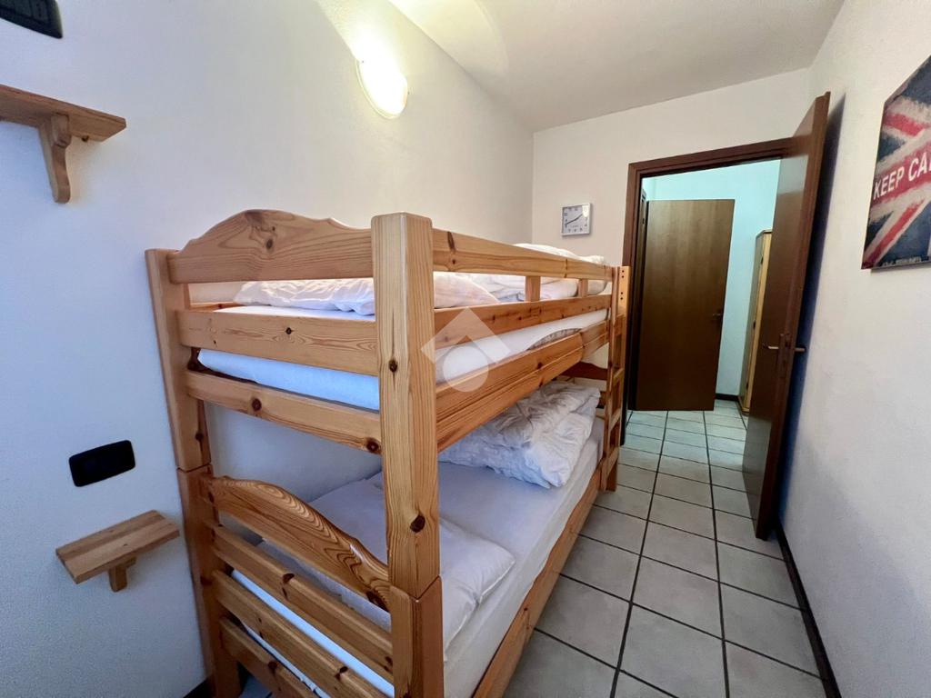 Attraverso il corridoio si raggiunge la zona notte composta da una camera matrimoniale, una cameretta con letto a castello e un bagno finestrato con doccia.
