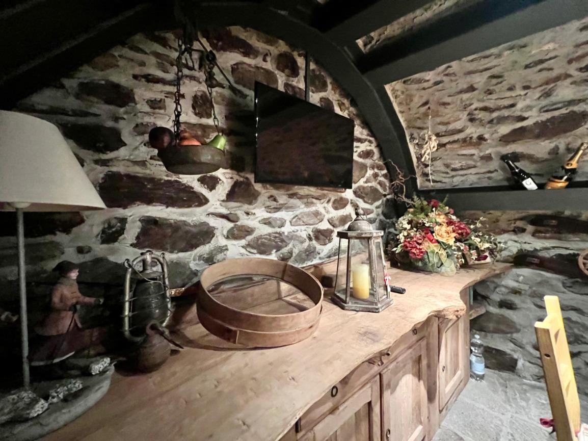 Attraverso il corridoio raggiungiamo il bagno con doccia, e la caratteristica sala da pranzo.