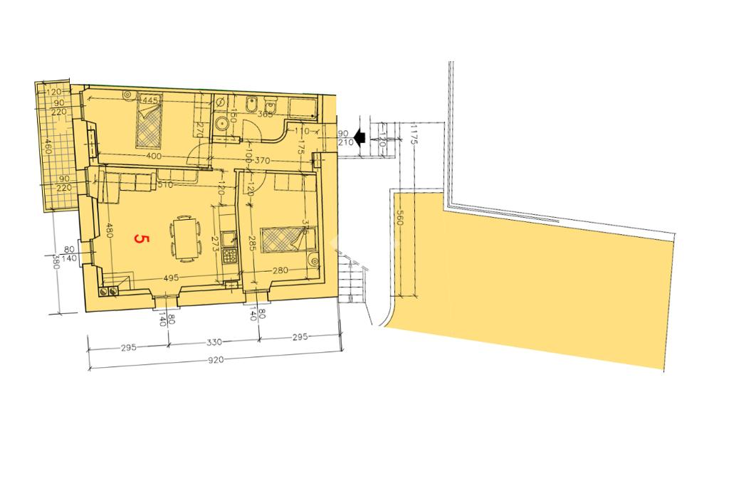 La soluzione risulta composta da zona giorno, due camere da letto,un bagno, balcone e giardino.