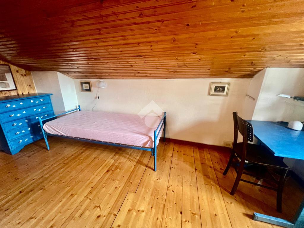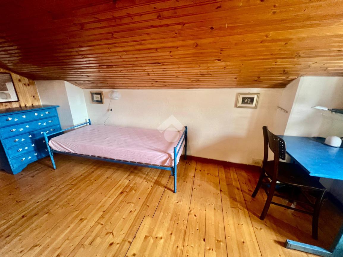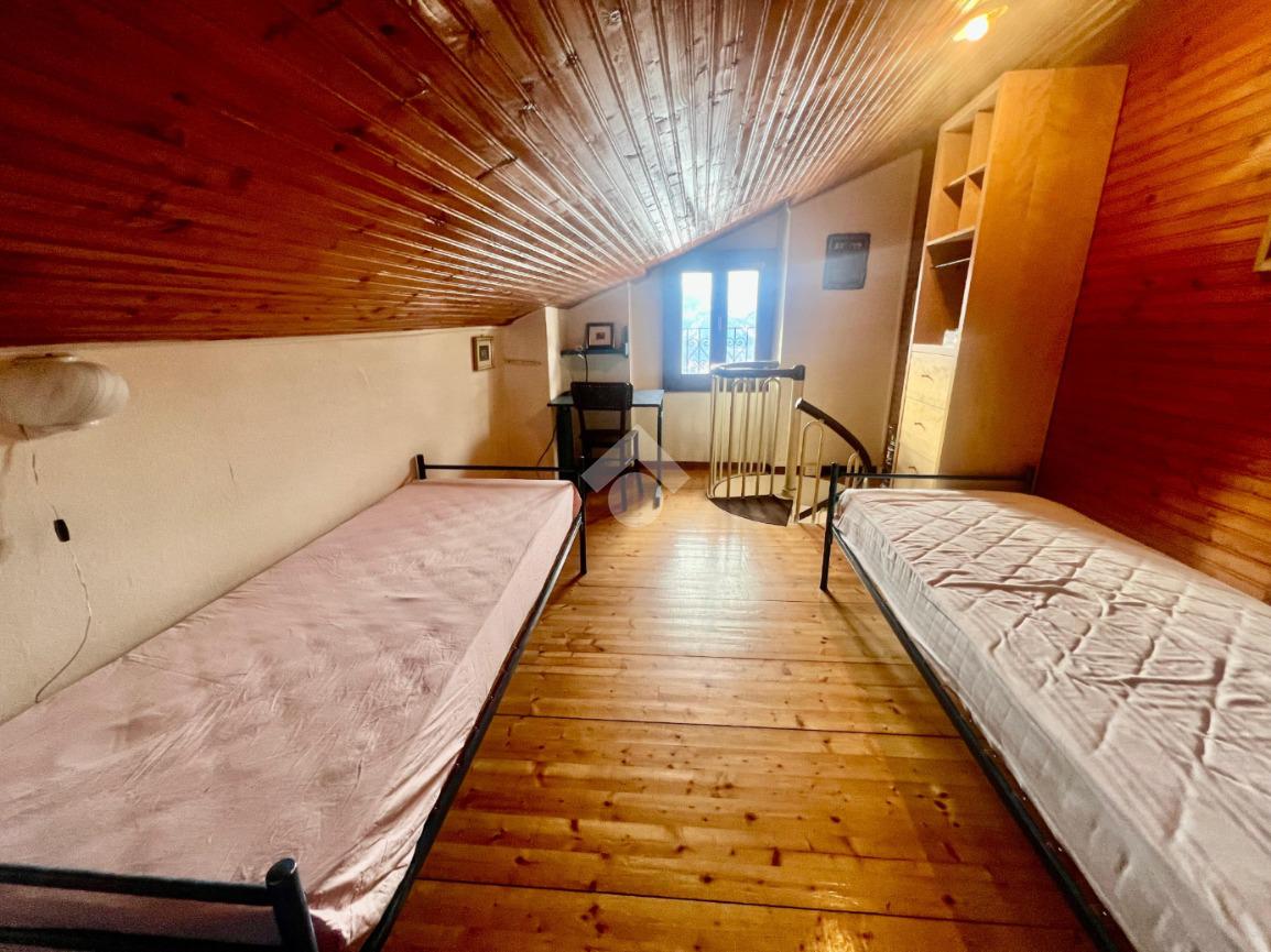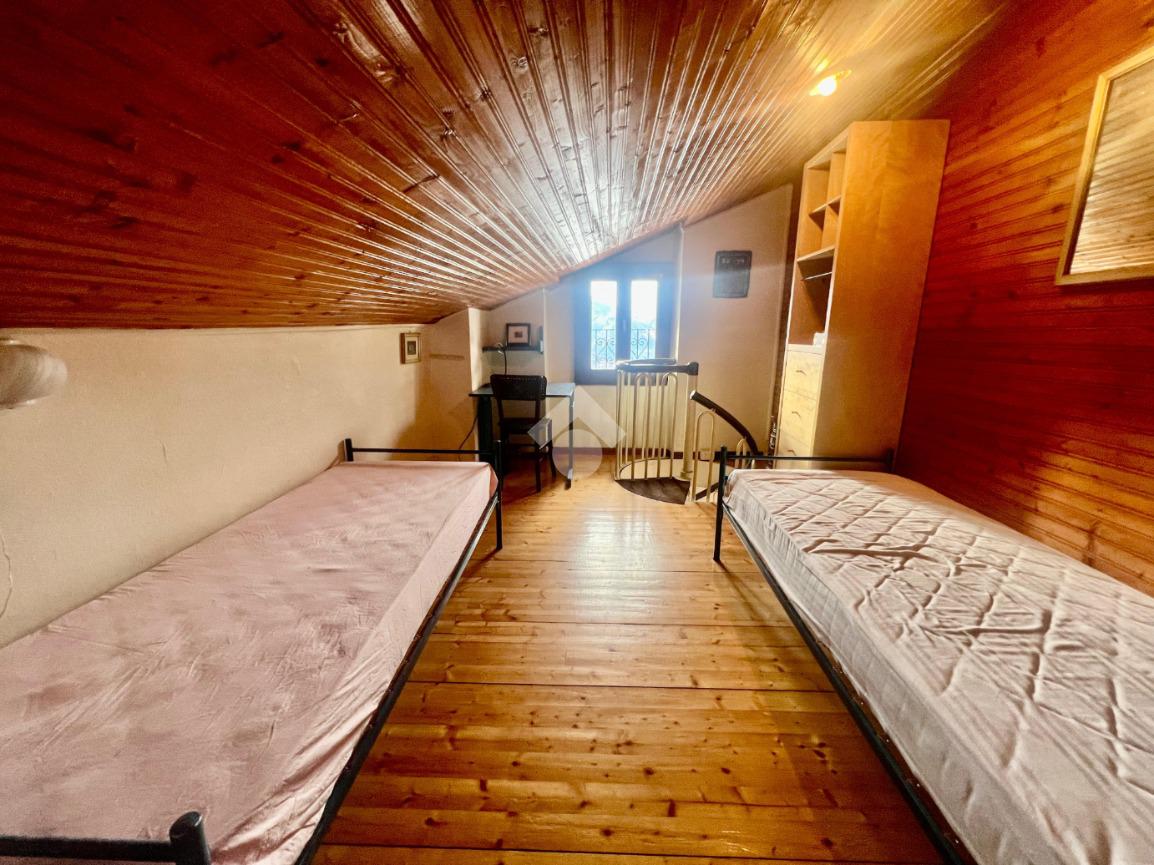 Accedendo alla soluzione troviamo la zona giorno con accesso diretto allo sfogo esterno con vista sulle montagne, cucina separata, bagno con doccia, e la prima camera matrimoniale, tramite la scala raggiungiamo il sottotetto composto da una camera, un bagno e un disimpegno utilizzabile come ripostiglio.