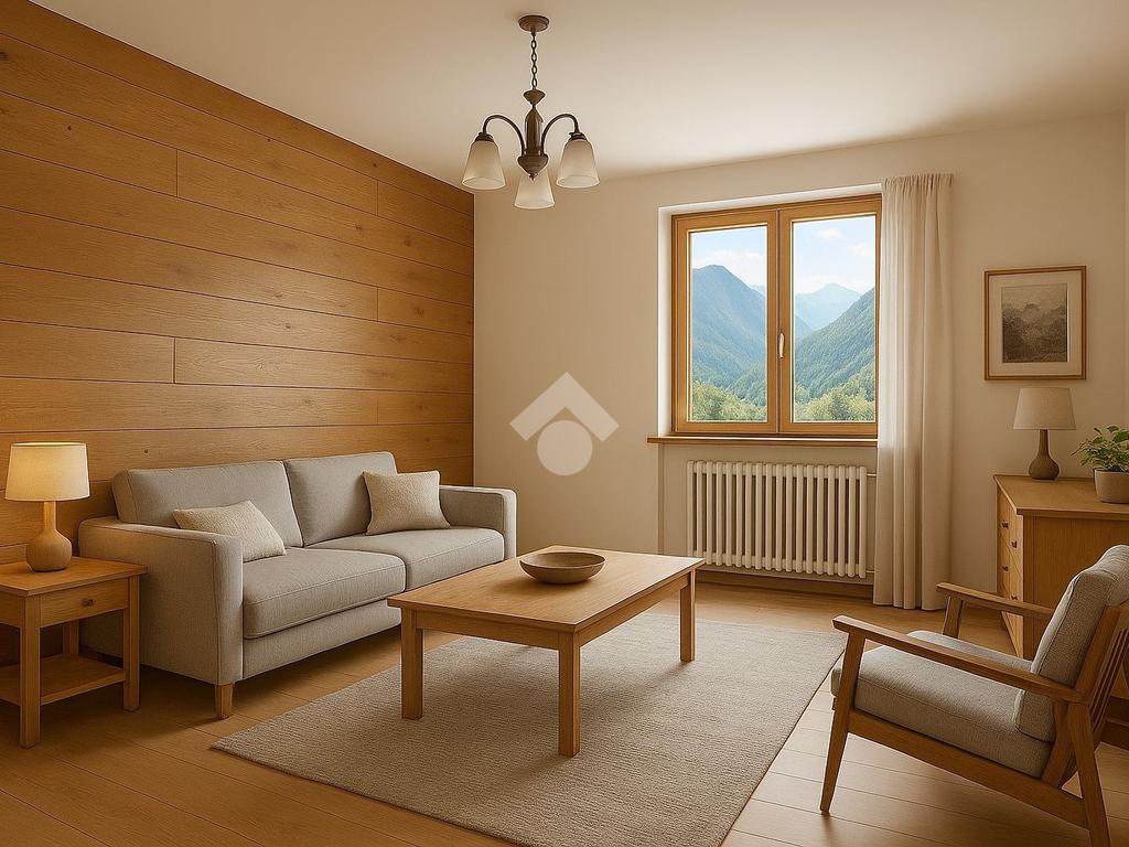 La soluzione risulta composta da ampia zona giorno con angolo cottura e balcone con vista sulle montagne.