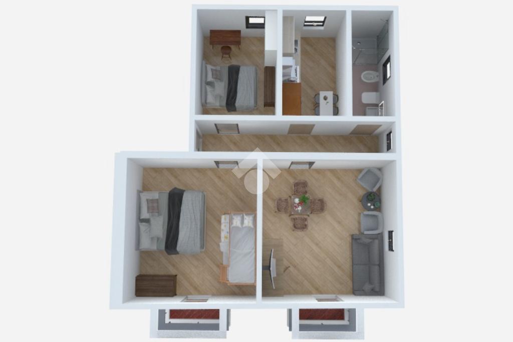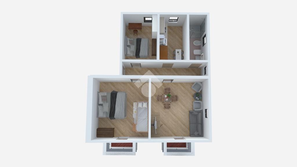 Composto da zona giorno, cucina , bagno finestrato con doccia e due camera matrimoniali.