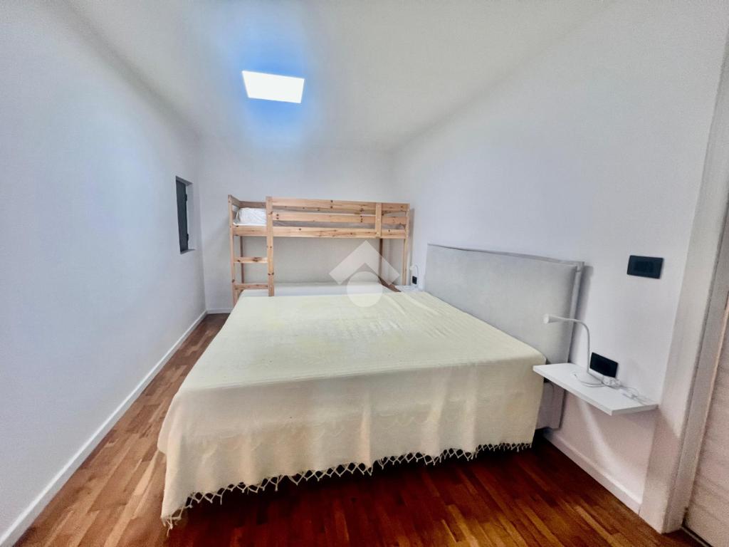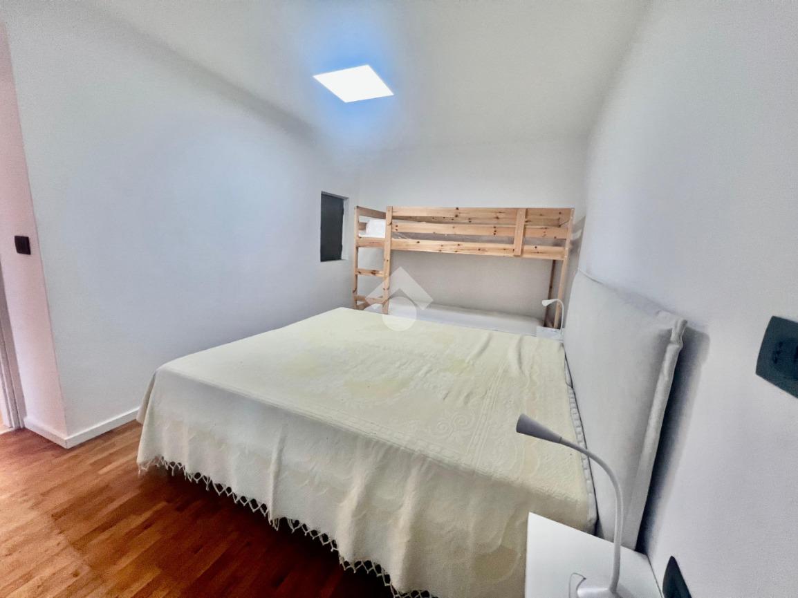 Proseguendo troviamo la prima camera con letto matrimoniale e letto a castello, tramite il disimpegno raggiungiamo il bagno finestrato con doccia e la seconda camera matrimoniale.