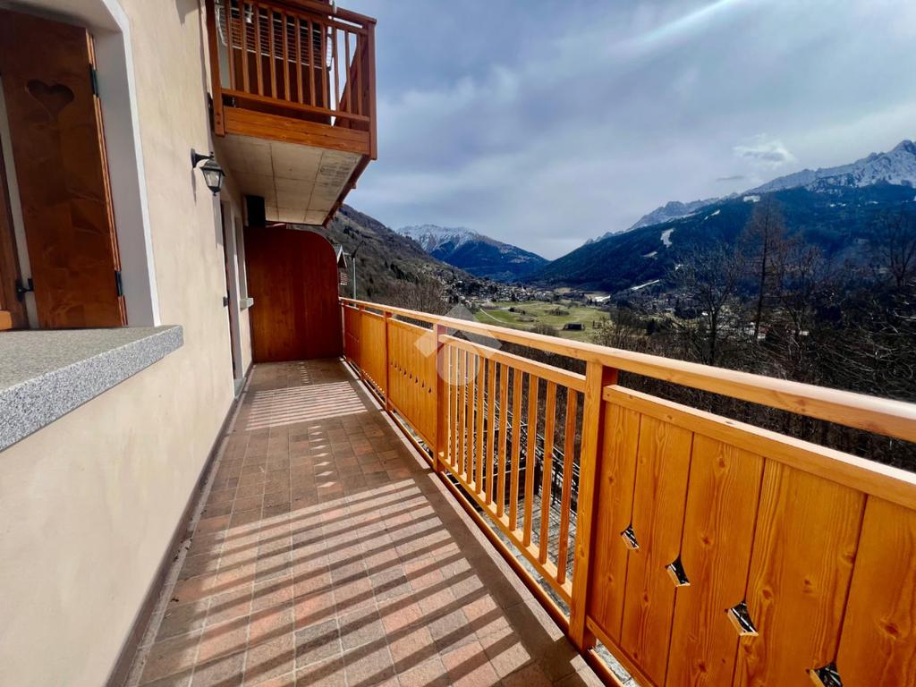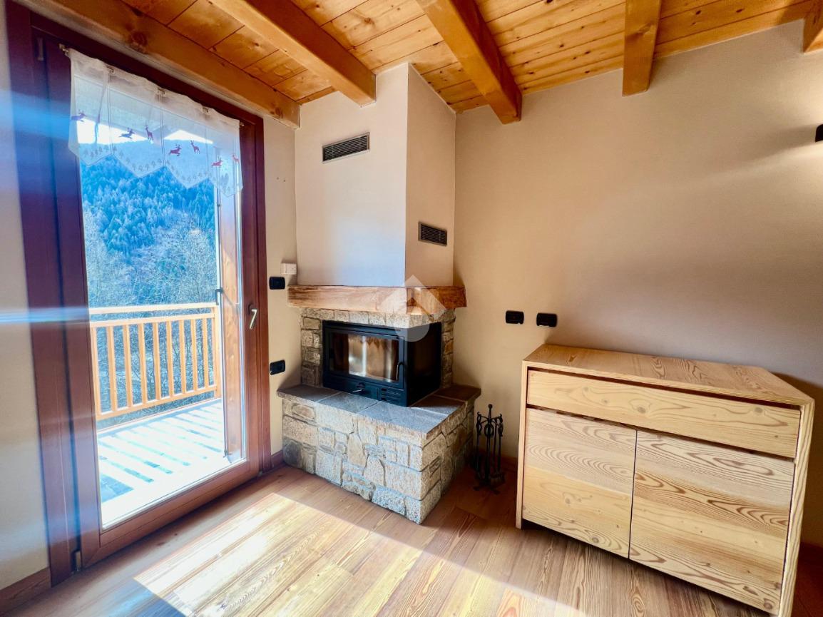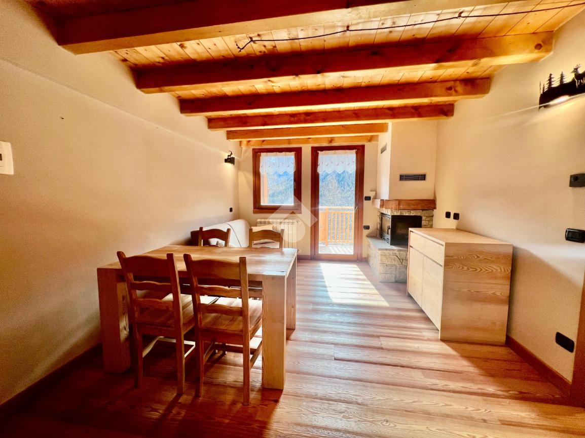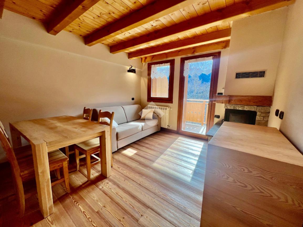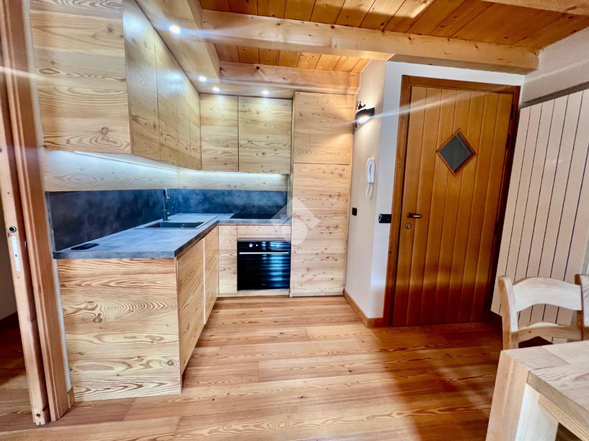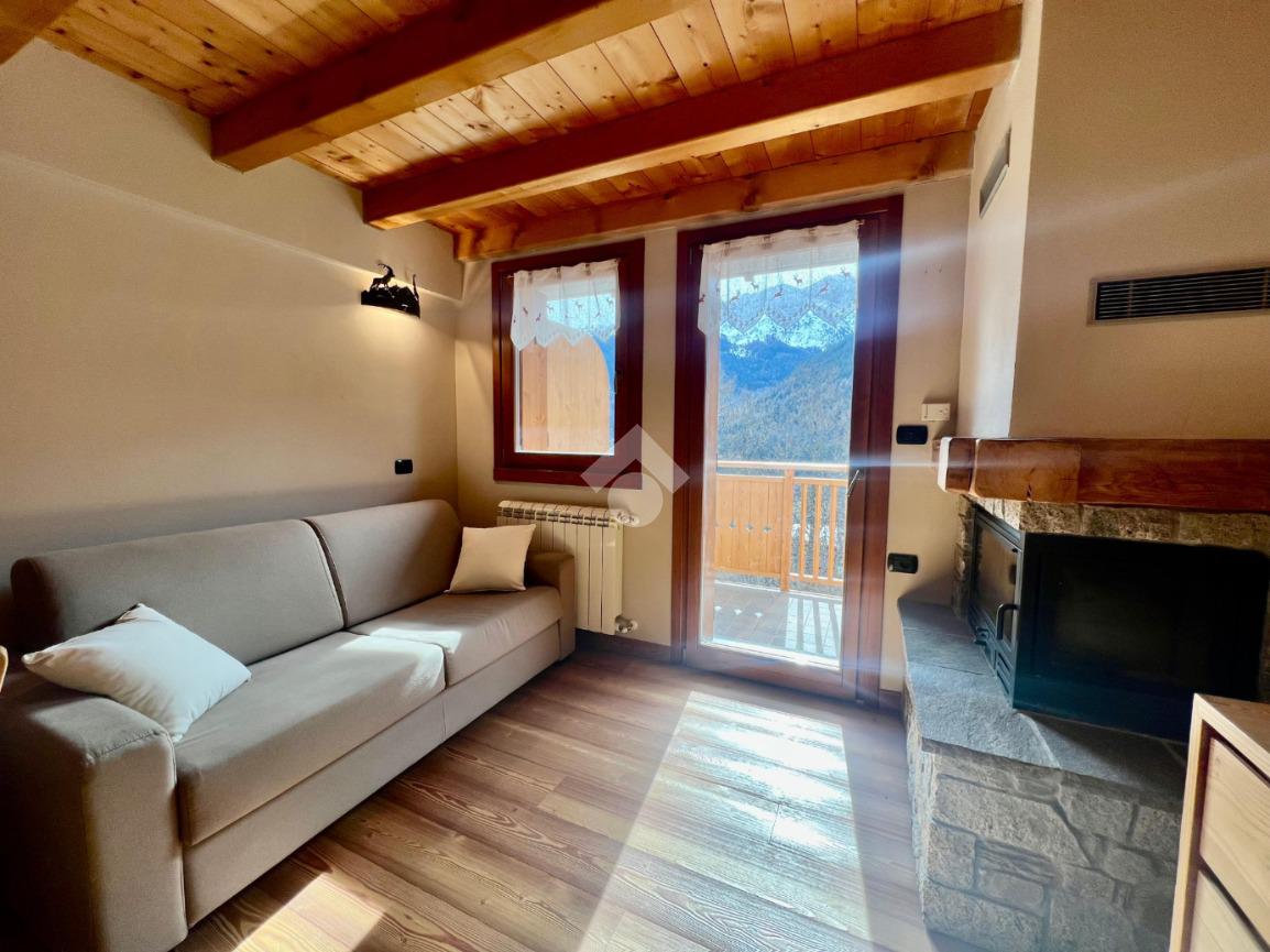La soluzione risulta composta da zona giorno con accesso all'ampio balcone,cucina a 'vista' e caminetto a legna.